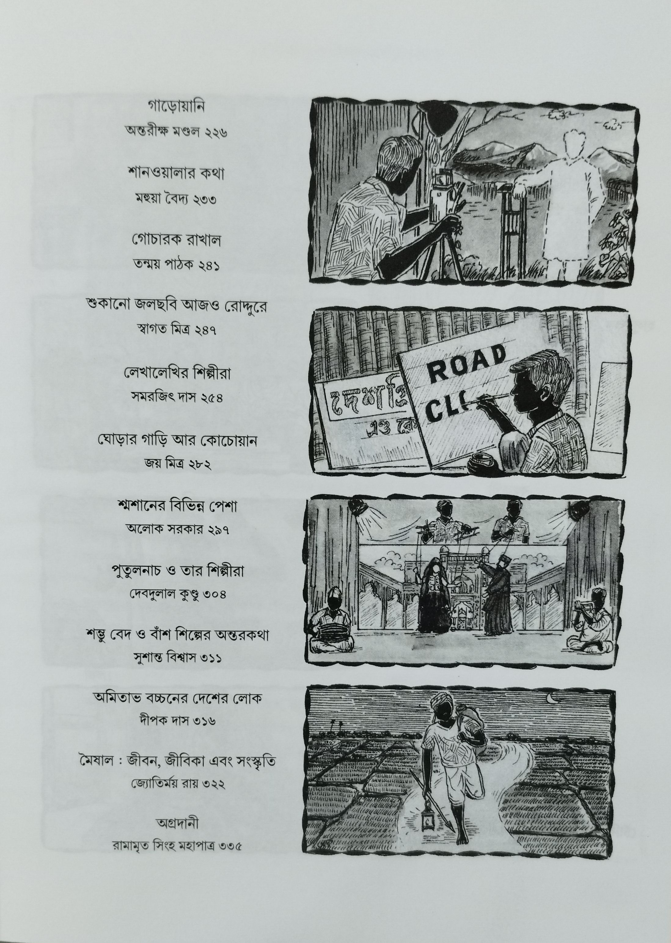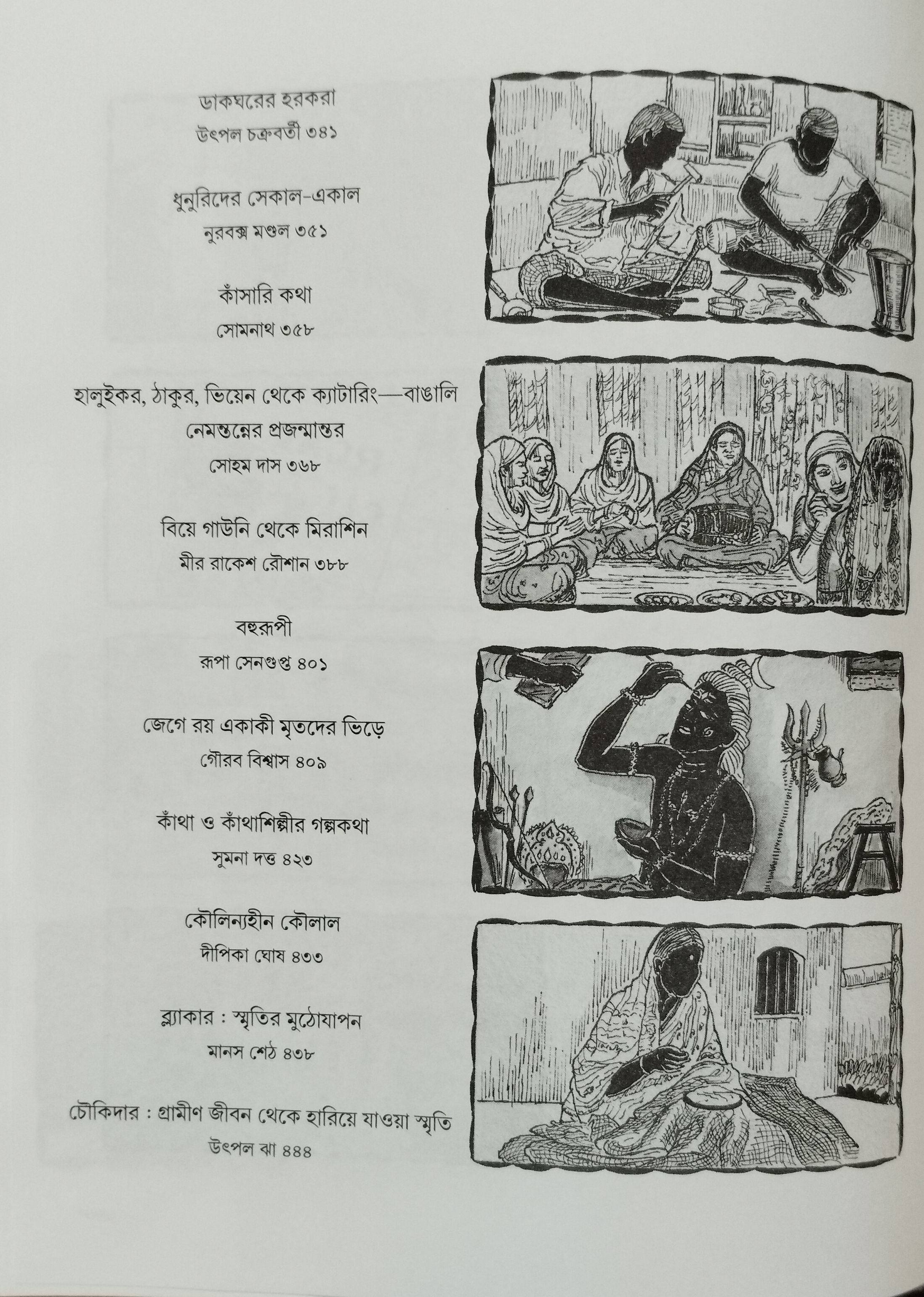 অপরপক্ষে পেশা বরাবরই শ্রমের সঙ্গে বিনিময়যোগ্য। ফলত অর্থ, অর্থলগ্ন সম্পদ ও অর্থকেন্দ্রিক ক্ষমতা সবকিছুর সঙ্গে শ্রমেরও যখন বিনিময়মাধ্যম, তখন শ্রমের বাজার ও শ্রমের চাহিদার যারা নিয়ন্ত্রক, তাদের ইচ্ছা এবং প্রয়োজন-অনুযায়ী কৌলিক পেশার কালক্রমিক বিপন্নতা অবশ্যম্ভাবী। সেই বিপন্নতার চেহারাটিকেই আমাদের এই সংকলন সকারণ-সহমর্মিতার সঙ্গে দেখতে চেয়েছে। বিপরীতপক্ষে স্মৃতির পেশাকে ভরকেন্দ্রে রেখে এই সুযোগে এই বই পরিক্রমা করেছে এক দীর্ঘ সময়ের বাঙালি সমাজজীবনকে।
