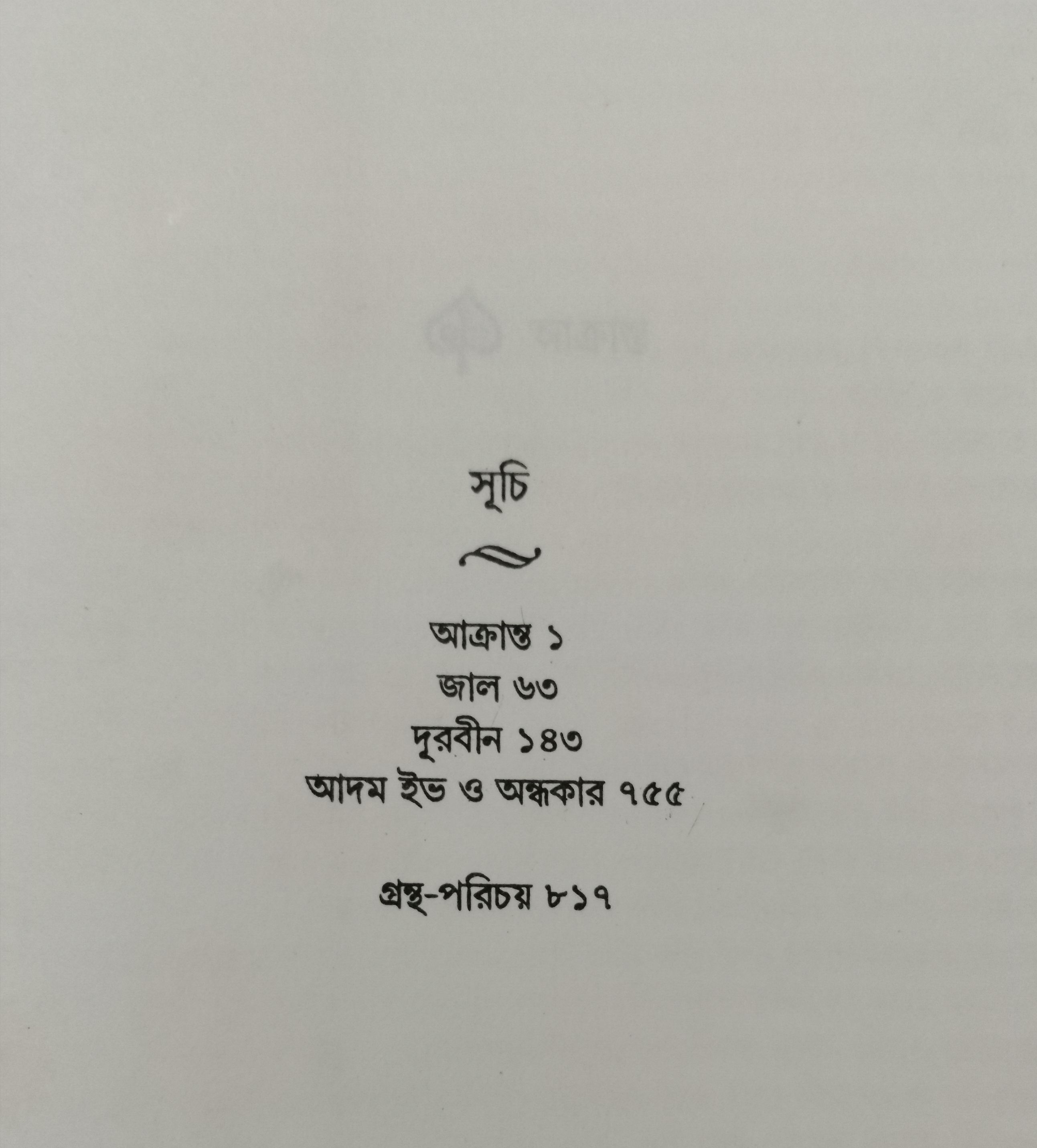 কালের এক অগ্রগণ্য সমালোচক যথার্থই লিখেছেন: "নদীর কোনও ভান নেই-শীর্ষেন্দু মুখোপাধ্যায়ের ঔপন্যাসিক সত্তাতেও কোনও ভণিতা নেই। এক প্রাণবন্ত শৈশবস্মৃতি, এক যন্ত্রণাময় অভিজ্ঞান-সংকট এবং শান্ত নিরাসক্ত অবলোকন সবার উপরে এক সর্বতোসুভদ্র আস্তিক্য তাঁর লেখক-জীবনকে গড়ে তুলেছে।" বাংলা কথাসাহিত্যের বিরল লেখকদের অন্যতম শীর্ষেন্দুর প্রধান শক্তি তাঁর এই আস্তিক্যবোধ। জীবনের সকল সংশয়ের মধ্যেও তিনি 'এক অসংশয়িত উত্তরণের কথা' উচ্চারণ করেন অপার সাহসে। চারপাশের অন্তহীন দিশাহীনতার মাঝখানে দাঁড়িয়েও তিনি সাহসী। এখানে তিনি এক অনন্যস্রষ্টা। শীর্ষেন্দুর যে-কোনও কাহিনীতে দেখি চতুর্দিকের সমস্ত বিপন্নতা সত্ত্বেও, 'মনুষ্যত্বের জন্য মানুষের মানবিক উৎকণ্ঠা দুর্মর'। এই মুহূর্তে এক সংক্ষুব্ধ সময়ের মধ্যে দিয়ে জীবনের পারাপার। তবু তারই মধ্যে মানুষের পবিত্র স্বরূপকে তিনি খোঁজেন পরম মমতায়। তিনি বিশ্বাস করেন, কোথাও একটা আশ্রয় আছে, ফেরার জায়গা আছে। 2 আস্তিক্যবোধের সঙ্গে এই 'প্রেমিক অথচ বৈরাগী' লেখকের সমগ্র সৃষ্টিতে লগ্ন হয়ে আছে 'এক অবোধ প্রবল ভালবাসার আকুলতা'। তাঁর নিজের কথায়, "এই আকুলতাকে আমি নানাভাবে প্রকাশ করার চেষ্টা করেছি আমার লেখায়। তবু মনে হয়, আমার প্রকাশভঙ্গির ব্যর্থতায় আজও বুঝি সবাইকে আমার ভিতরকার ভালবাসার কথাটা বোঝাতেই পারিনি।... আমার অকথিত ভালবাসার কথা কি বোঝে, বুঝতে পারে এই পৃথিবী, এই কলকাতা, এই দেশ? ভাষা দিয়ে সব কি প্রকাশ করা যায়?" লেখকের আপন সংশয় সত্ত্বেও তাঁর সৃষ্ট চরিত্ররা বহন করছে 'সেই ভালবাসার তরঙ্গ'। উপন্যাসের শৈলী ও নির্মিতিতে শীর্ষেন্দুর আত্মস্থ অথচ অনাসক্ত ভঙ্গি এবং বীক্ষণ বাংলা কথাসাহিত্যে অন্যমাত্রা সংযোজন করেছে। তাঁর লেখা সমস্ত উপন্যাস এবার খণ্ডে খণ্ডে প্রকাশের আয়োজন করা হয়েছে। এই চতুর্থ খণ্ডে আছে স্মরণীয় চারটি উপন্যাস: আক্রান্ত, জাল, দূরবীন, আদম ইভ ও অন্ধকার।