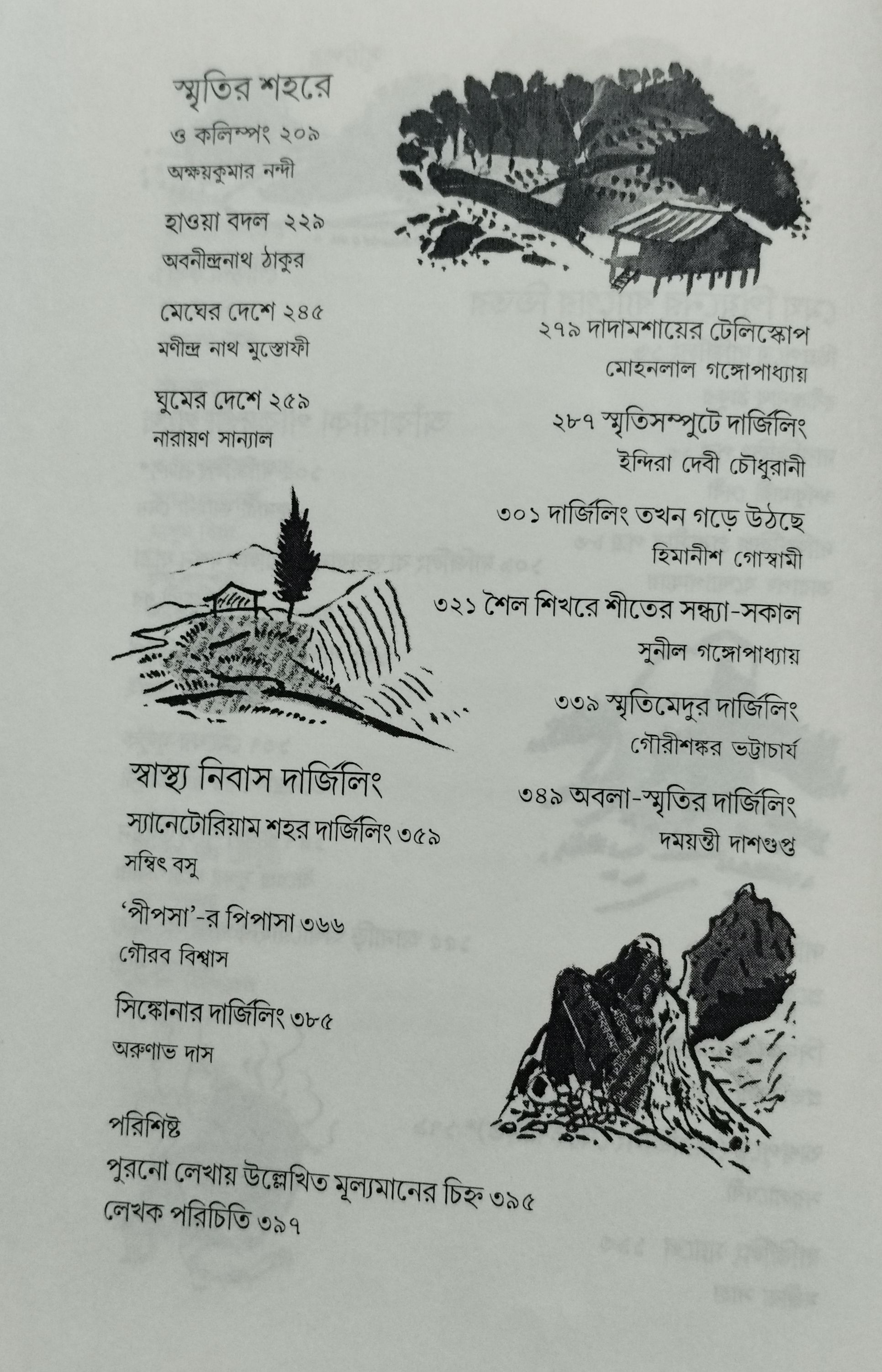যুগে যুগে ছোটবেলায় প্রথম পাহাড় দেখার রোমাঞ্চ, কৈশোরে পয়লা ট্রেকিংয়ের পাঠ, যৌবনে সফল ও ব্যর্থ প্রেমের মিষ্টি-কষা টাকনা, চড়াই ভাঙার চ্যালেঞ্জে নাস্তানাবুদ মাঝবয়েসি হৃদযন্ত্রের অঘোষিত হরতাল আর বার্ধক্যের কেদারায় বসে তারিয়ে তারিয়ে কাঞ্চনজঙ্ঘা দর্শনের সুবাদে জীবনের সারমর্ম উপলব্ধি করার মতো সব পর্বেরই সাক্ষী থেকেছে এই শৈলশহর। বাঙালির দীর্ঘলালিত দার্জিলিং চর্চার রংবাহারি অভিজ্ঞতার সেই সমস্ত ঝলকে সেজে উঠেছে এই সংকলন।