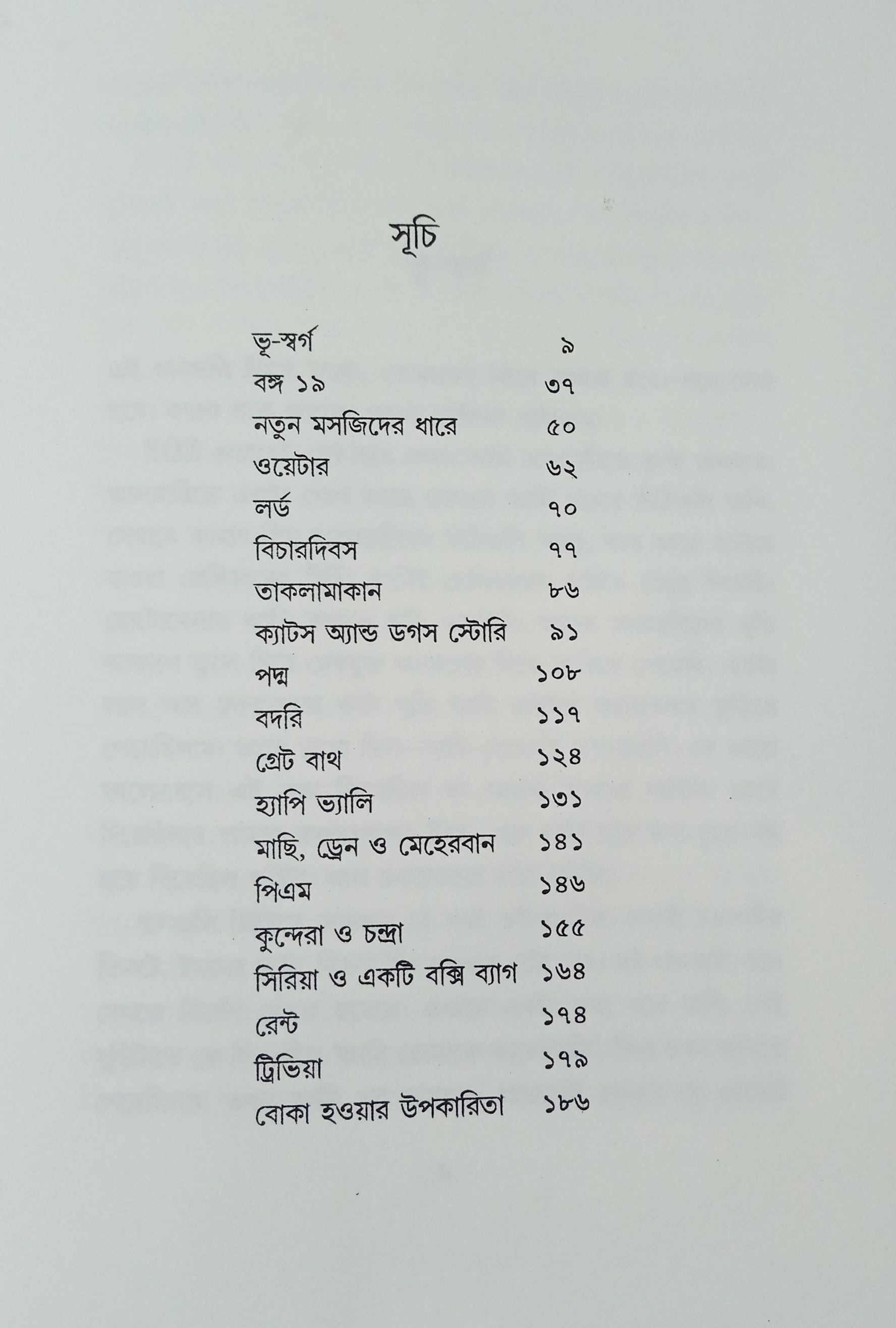 গল্পের আদানপ্রদান মুদ্রা লেনদেনের চাইতে আদিম। গল্প কেবল শেষ বাক্যে শেষ হয়ে যায় না, তা চলতেই থাকে। গল্পকথকের মতোই গল্পেরও একটি আত্মপরিচয় রয়ে যায়। সেই পরিচয়ের মধ্যে ধরা পড়ে সময়জীবনের বহু মাত্রা ও চিহ্ন। এই গল্পের বইয়ে আপাত সরল, আপাত মসৃণ কথাগুলি সূত্র মাত্র, বলা যায়, গোটা লেখাটাই হয়ত বৃহৎ কোনও আয়োজনের ভূমিকা কিংবা পরিশিষ্ট। বাহ্যত সহজপাঠ্য ও সহজবোধ্য এই লেখা কার্যত কিছু নৈর্ব্যক্তিক প্রস্তাবনা ও টিপ্পনি। বিয়োগ যতখানি বিনোদন, এই বিনোদনও ততখানি অবসাদগ্রস্থ। এ এক গর্হিত মস্করা। অস্তিত্ব বিষয়ক কৌতুক। কবিতা-লেখকের পথশ্রমজনিত অতিকথন।