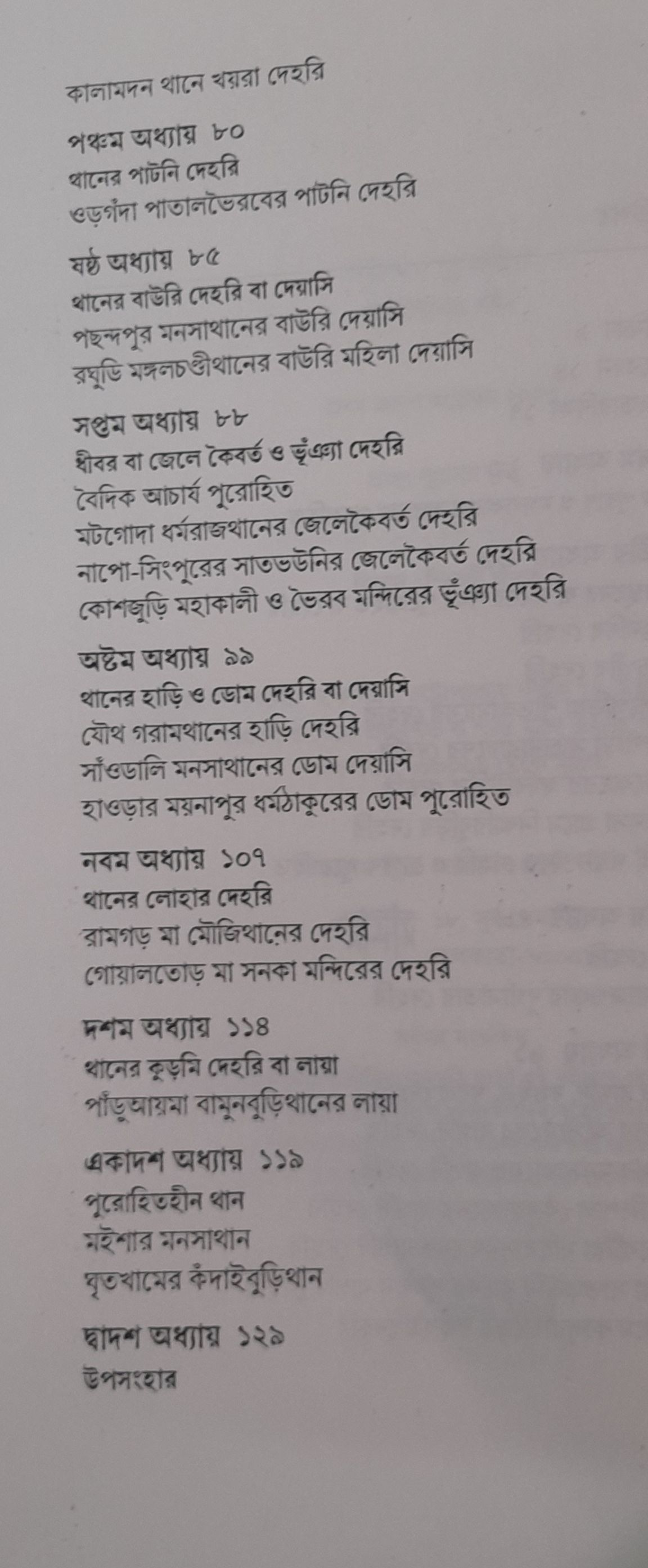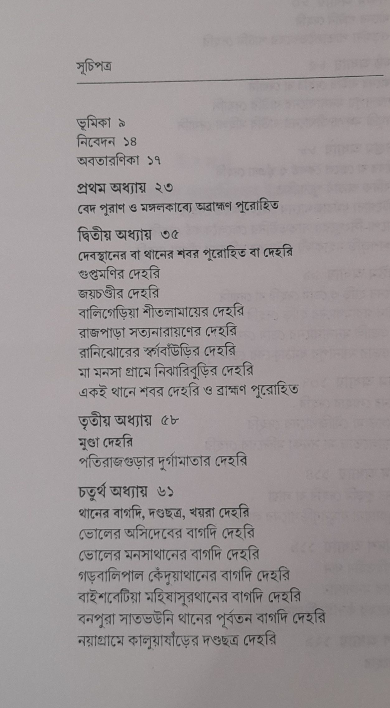 প্রচলিত ধারণা, দেবস্থানে পূজারি বা পুরোহিত হবেন ব্রাহ্মণ। কিন্তু এ বইয়ের লেখক রাঢ়বাঙলার বিভিন্ন স্থানে ঘুরে বেড়ানোর সময় লক্ষ করেছেন অধিকাংশ জনপ্রিয় দেবস্থান বা ঠাকুরথানে পূজারি হিসেবে নিযুক্ত রয়েছেন অব্রাহ্মণ পুরোহিত। কোথাও রয়েছেন লোধা-শবর পুরোহিত, কোথাও বাগদি, কোথাও বাউরি, কোথাও লোহার, কোথাও জেলেকৈবর্ত আবার কোনও থানে রয়েছেন কুড়মি পুরোহিত। কোনও থানে রয়েছেন একই সঙ্গে শবর ও ব্রাহ্মণ পূজারি। কোনও থানে পুরোহিতই নেই। ভক্তরাই সেখানে পুরোহিত।