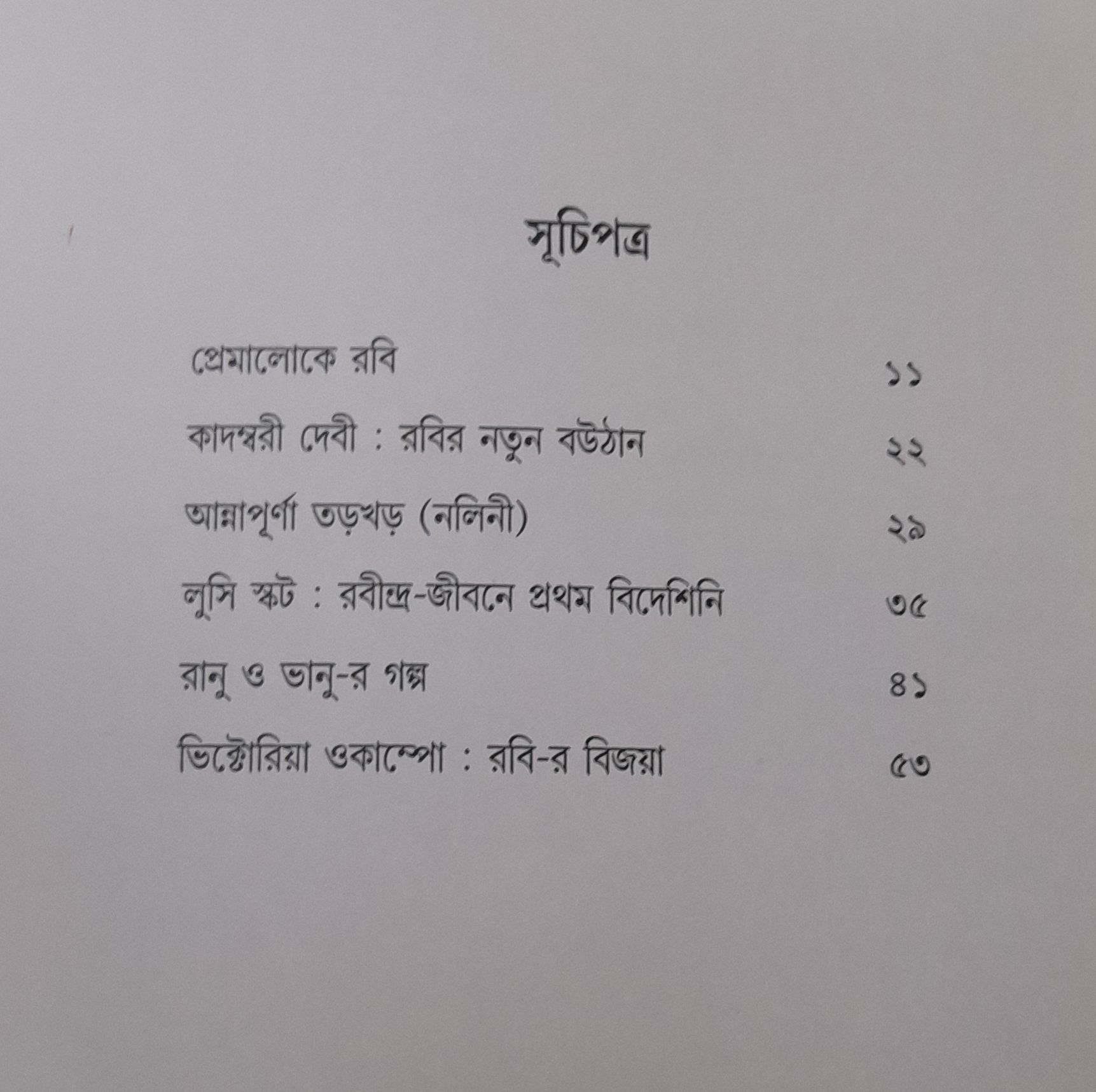 রবীন্দ্র-গবেষকদের তথ্য থেকে রবীন্দ্র-জীবনে মোট দশ জন নারীর উল্লেখ পাওয়া যায়, তারমধ্যে নতুন বৌঠান কাদম্বরী দেবী, বোম্বের মারাঠি কন্যা আন্নাপূর্ণা তড়খড়, স্কটল্যান্ডের লুসি স্কট, বেনারসের রানু অধিকারী ও আর্জেন্টিনার ভিক্টোরিয়া ওকাম্পো, এই পাঁচ জন নারীকে নিয়েই এই নিবন্ধ গ্রন্থে বিশদে আলোচনা। কবির সঙ্গে তাঁদের প্রত্যেকের সম্পর্কের রসায়ন কি ছিল, কিরূপ ছিল সেই প্রেমের রং ও রূপ, সেটা তথ্য সহকারে বিশ্লেষণ করা হয়েছে।