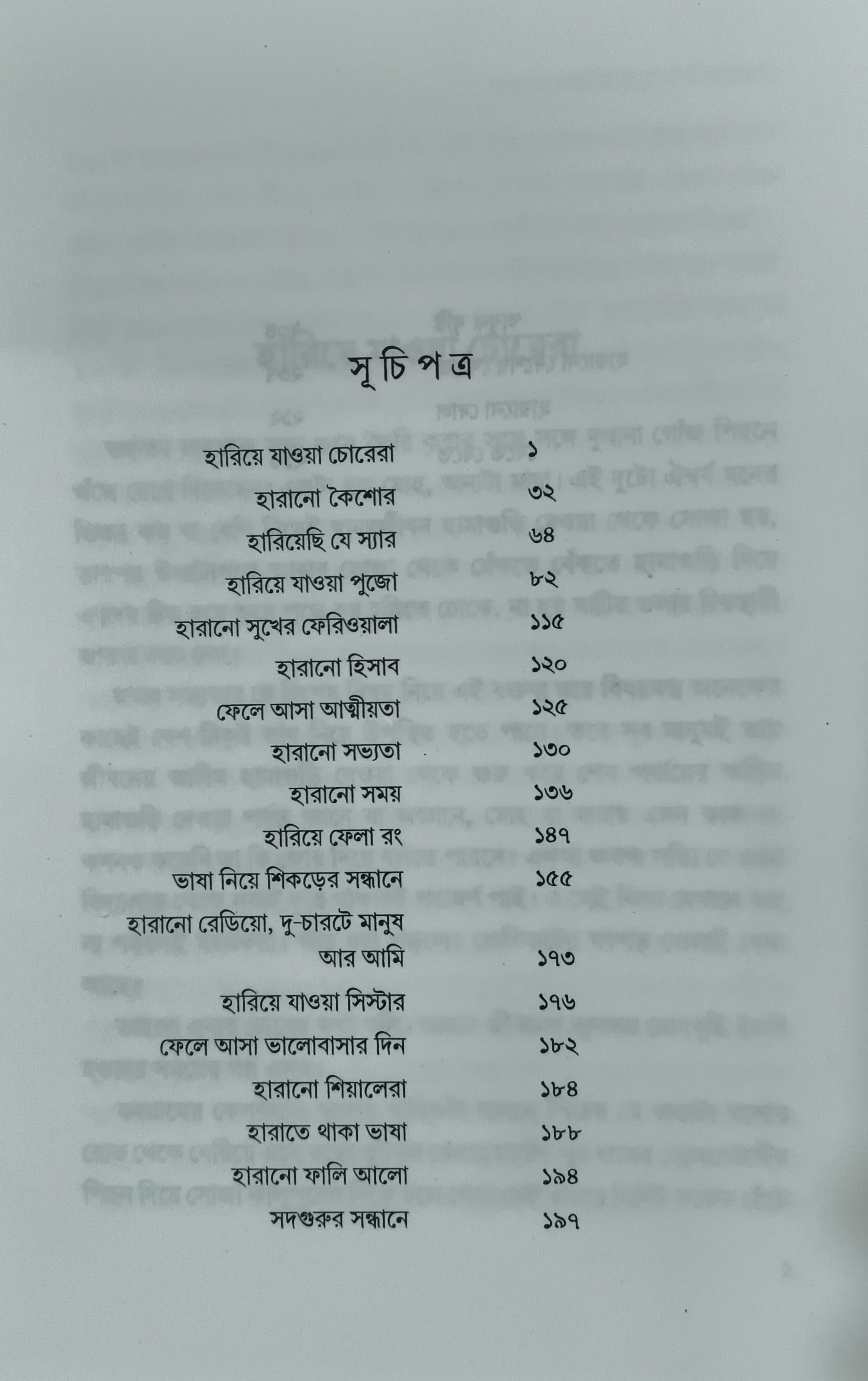 এ বইয়ের অধিকাংশ লেখাই হারানো সময়ের। লেখকের হারানো জীবনের। কিন্তু, কিছু কি হারায়। ইছামতী নদী হারায় না, টাকি স্টেশনও না, প্রতিমাও হারায় না দুর্গার, তাদের রূপ বদলে যায়। এ সেই শক্তির মত, রূপান্তরিত হয়। আবার কালের মাত্রাকে যদি ধরা যায়, মহাকালের চোখে কতটুকুই বা সময়, যে সময়ের কথা ধরা পড়ল এই বইতে! চোখের বদল ঘটে বটে, আর মনের। সে মন ব্যক্তিক হোক অথবা সামগ্রিক। দ্রুত বদলের দুনিয়ায় কত কী-ই তো হারানো বলে মনে হয়। মনে হয়, কিন্তু আমরা ধরেও তো রাখি বুকের ভিতর কয়লার রেলগাড়ির ধোঁয়া, খোসাওয়ালা চিনেবাদাম, বন্ধুদের প্রতি নির্ভরতা, সব কিছু। এ বই হারানোর নয়, আসলে মনে রাখার। যা মনে রয়ে যায়, তা-ই মনে পড়ে যায়। আর যা মনে পড়ে যায়, তার মধ্যে থেকে ছেঁকে নেওয়া অংশই অন্যকে জানাতে হয়-নির্দ্বিধ। এ বই মনে পড়ার, পড়ানোর। জানার ও জানানোরও।