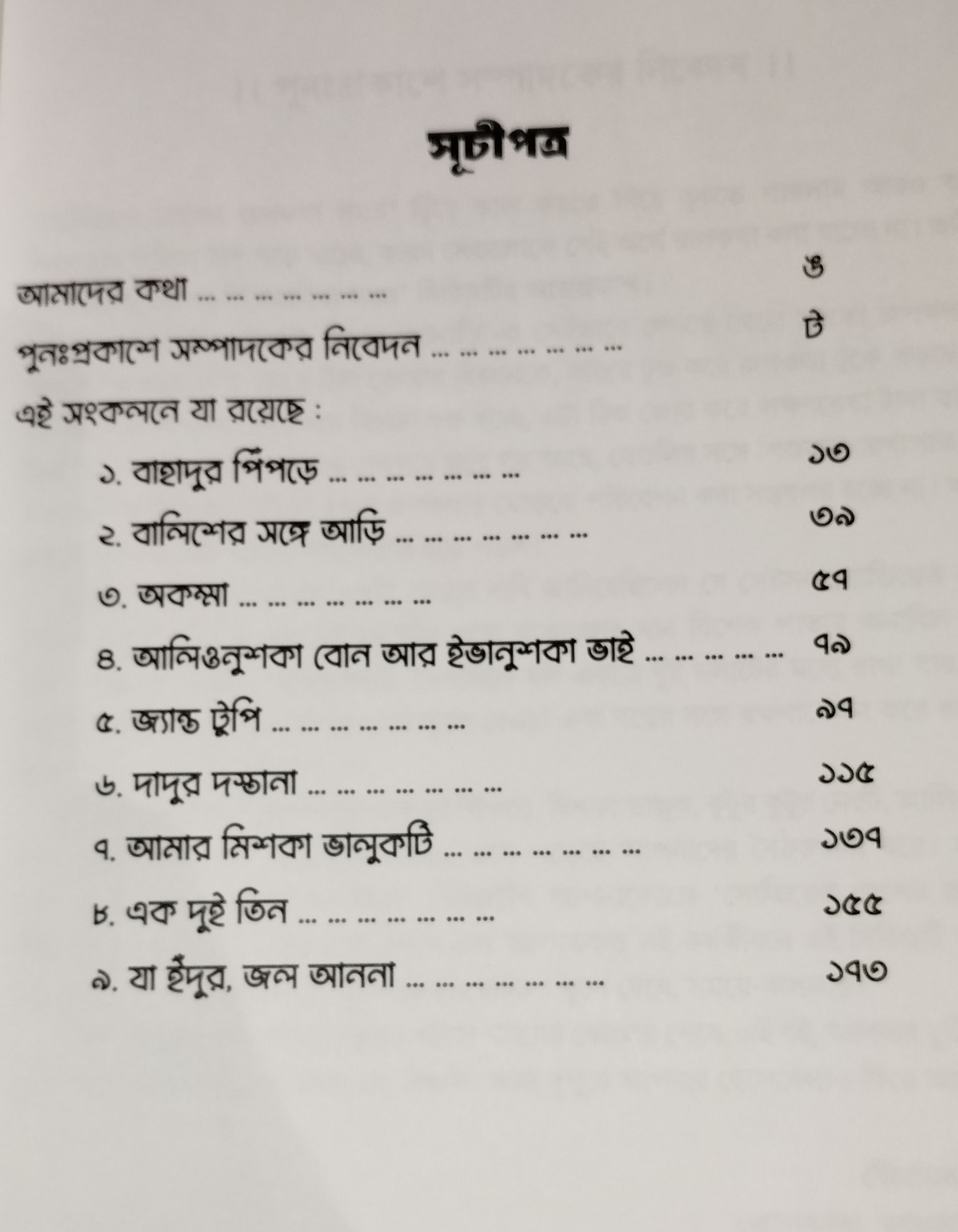 নয়খানি বই নিয়ে তৈরী হলো প্রথম খন্ড। বাহাদুর পিঁপড়ে, বালিশের সঙ্গে আড়ি, অকম্মা, আলিওনুশকা বোন আর ইভানুশকা ভাই, জ্যান্ত টুপি, দাদুর দস্তানা, আমার মিশকা ভালুকটি, এক দুই তিন এবং যা ইঁদুর, জল আননা দিয়ে সাজানো হলো এই খন্ডের কলেবর। চেষ্টা করবো, খুব শিগগিরই বাকি খণ্ডগুলিও আপনাদের দরবারে নিয়ে আসবার