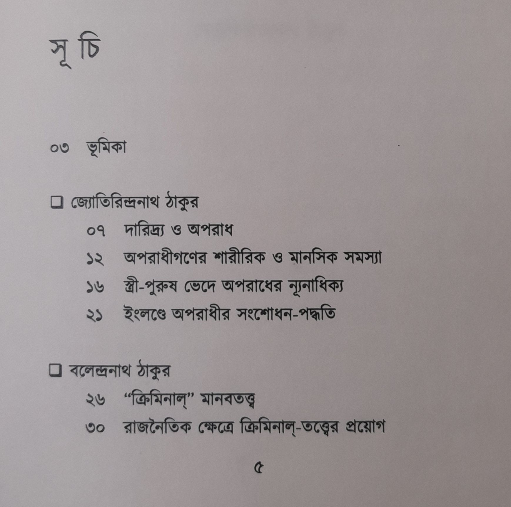 ঠাকুরবাড়ির আরও দুই কৃতি সন্তানের লেখায় সেজে উঠে গ্রন্থিত হল আরও একটি গ্রন্থ। সম্পর্কে তাঁরা কাকা-ভ্রাতুষ্পুত্র। উভয়ের লেখাগুলিই প্রায় শত বর্ষ প্রাচীন। এবং অপরাধ বিজ্ঞানের মতো একটি আধুনিক বিষয় নিয়ে সেই সময় প্রবন্ধ লিখেছিলেন তাঁরা। যদিও এই বিষয়ের চর্চা বাঙালীর সাহিত্য-হেঁশেলে ততদিনে দারোগা প্রিয়নাথ মুখোপাধ্যায়, শরচ্চন্দ্র সরকার, পাঁচকড়ি দে, দীনেন্দ্রকুমার রায় প্রমুখের হাত ধরে বেশ রমরম করে প্রবিষ্ট হয়েছে। এবং এই লেখাগুলিতে অধিকাংশ ক্ষেত্রেই পরিলক্ষিত হত বিদেশি গল্পের ছায়া। সেই প্রবণতাই খানিক ধরা পড়েছে জ্যোতিরিন্দ্রনাথ এবং বলেন্দ্রনাথের এই প্রবন্ধগুলিতেও। মূলত ইংল্যান্ডকেন্দ্রিক অপরাধ মনস্তত্ত্বের উপরই আলোনা রয়েছে এই প্রবন্ধগুলিতে।