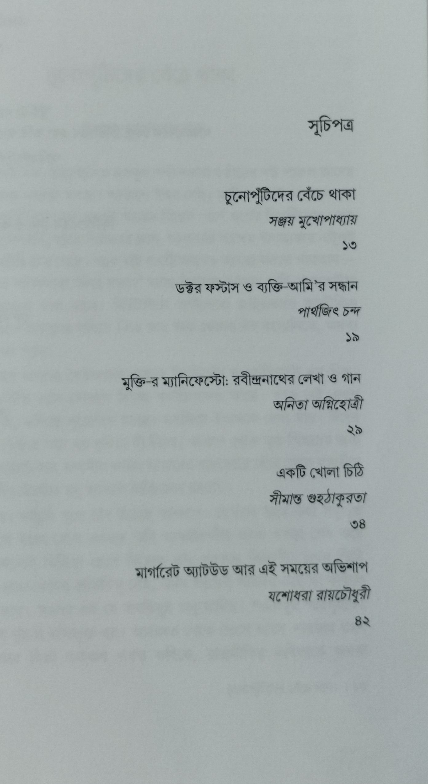 বিশ্বযুদ্ধের সময়ও মানবিকতার খাতিরে চিকিৎসা ক্ষেত্রটিকে ছাড় দেওয়া হত। কিন্তু, সেইটুকু 'মানবিকতা'ও অবশিষ্ট নেই আজ আর। সমাজ রাজনীতি আর্থসামাজিক পরিস্থিতি এক অস্থির সময়ের মধ্যে ঘূর্ণায়মান। একদিকে রুটি-রুজির অনিশ্চয়তা, সেইসঙ্গে বাজার, অর্থনীতি বা রাজনীতিতে সর্বত্রই অস্থিরতা মাথা চাড়া দিচ্ছে। সমস্যার কোনও একক স্থিরবিন্দু নেই। সভ্যতা, তার ভঙ্গুর গণতান্ত্রিক কাঠামোসহ এক দিশাহীন সময়ের দিকে এগিয়ে যাচ্ছে। পাশের জনের সঙ্গে তো বটেই, নিজের সঙ্গে সংযোগও যেন ক্ষীণ হয়ে আসছে। এমতাবস্থায় কোন বই বা লেখা বা শিল্পের কাছে আশ্রয় চাইতে পারি আমরা? যা শুধু আমাকে নয় আমার চারপাশের মানুষকেও বুঝতে সাহায্য করবে? আলোর জোরালো দিশা না হোক, আলোর আভাসখানা অন্তত দিতে পারবে?