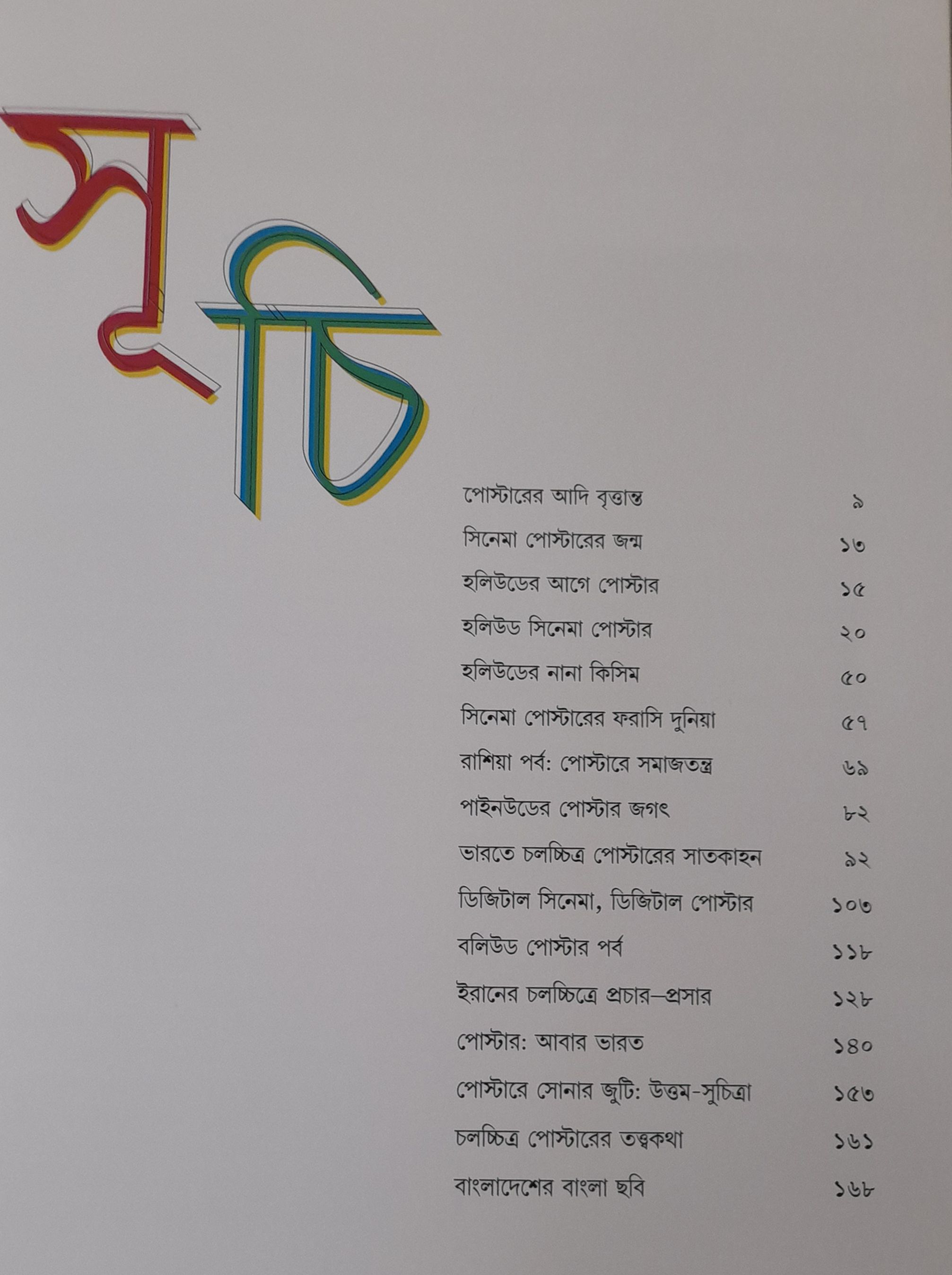 চলচ্চিত্র পোস্টারের জন্ম চলচ্চিত্র জন্মের প্রায় একই সময়ে। নানা সময়ে নানা দেশে এই চলচ্চিত্র পোস্টারের নানা বিবর্তন, পরিবর্তন ঘটেছে বিষয়ে, আঙ্গিকে, প্রয়োগ-কল্পন্য ও শৈল্পিক-চিন্তায়। কখনও পৃথিবীবিখ্যাত শিল্পীরা চলচ্চিত্রের জন্যে পোস্টার এঁকেছেন। চলচ্চিত্রের সামজিক ও অর্থনৈতিক ইতিহাসে চলচ্চিত্র পোস্টার এক গুরুত্বপূর্ণ ভূমিকা পালন করেছে। সেই পোস্টারের আদি, অতীত, বর্তমান নিয়েই এই সচিত্র গ্রন্থ, যাতে রয়েছে বিশ্ব চলচ্চিত্রের পোস্টারের বিবর্তনের ইতিহাস, সঙ্গে শতাধিক দুষ্প্রাপ্য মূল পোস্টারের প্রতিলিপি। রয়েছে পৃথিবীর প্রথম সিনেমা পোস্টার থেকে হাল আমলের চলচ্চিত্র পোস্টার। যে-কোনও চলচ্চিত্র অনুরাগীদের কাছে তো বটেই, এমনকী সিরিয়াস গ্রন্থপ্রেমিকের কাছেও এটি অবশ্য সংগ্রহযোগ্য গ্রন্থ, বলা যেতে পারে কালেক্টর আইটেম।