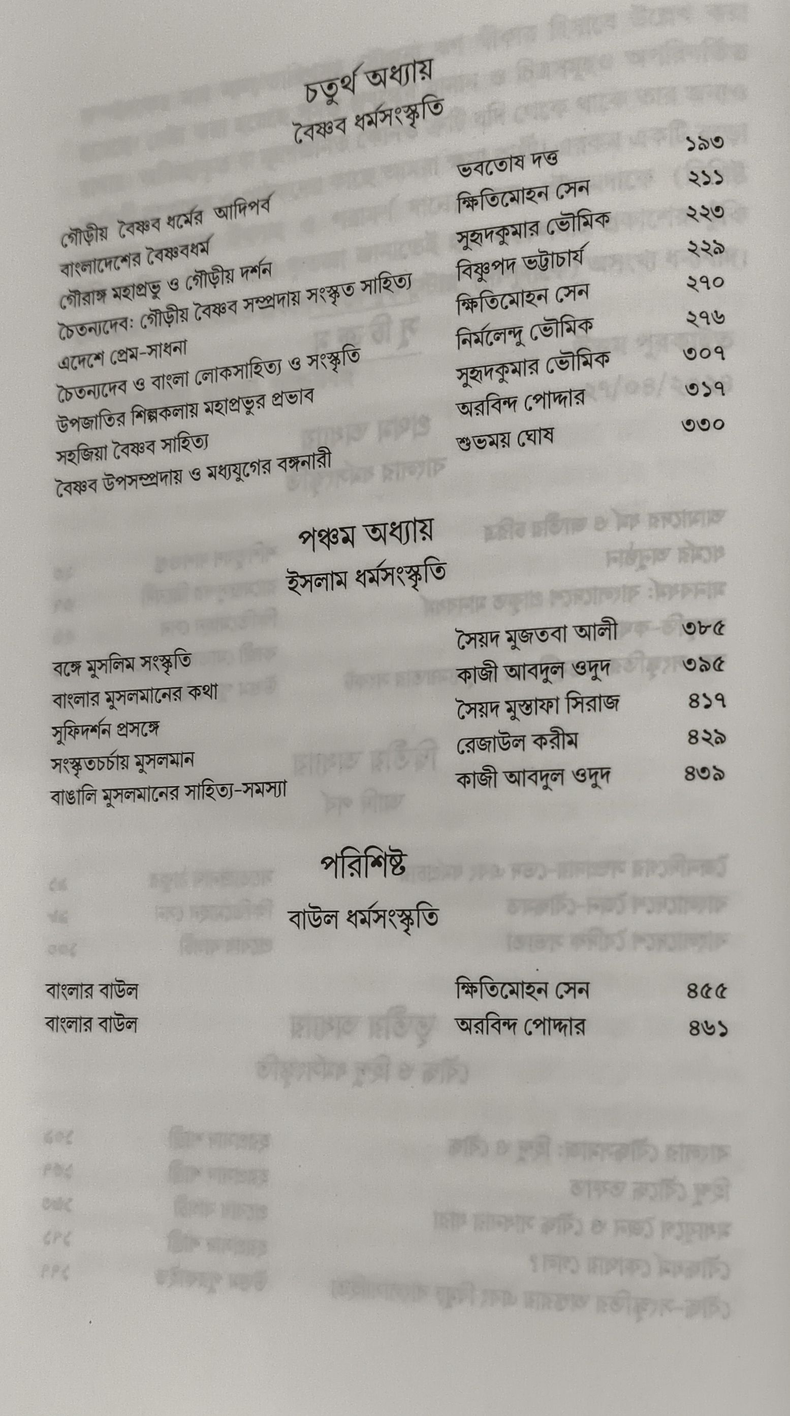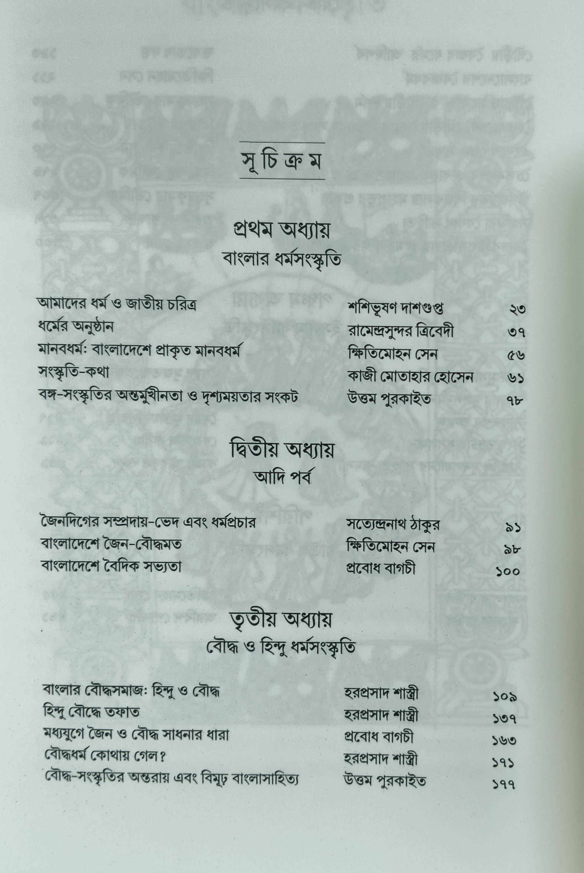 ধর্ম কি? অতিপ্রাকৃত এক শক্তির প্রতি প্রগাঢ় বিশ্বাস? নাকি আরও কিছু! বিতর্ক বহুমুখী হলেও ধর্মের মূলনীতি আসলে ধারণ করা। মানুষের হাজার হাজার বছরের জীবন অভিজ্ঞতায় যে নীতিগুলি সঞ্চিত হয়েছে সেগুলিই ধর্মনীতি। আর জীবনধারণের এই নীতিগুলি রক্ষা করার মানে সেই দেবতার নানা রূপের কল্পনা। অন্যদিকে আদিম বা প্রাকৃত জীবনধারা থেকে উন্নততর জীবনচেতনায় উত্তরণই মানুষের সংস্কৃতি। সৌন্দর্যবুদ্ধিই মানুষকে তার প্রাকৃত জীবনকে নিয়ন্ত্রণ করতে, উন্নত করতে শেখায়। এই সংস্কৃত হওয়ার সাধনাই মানুষের অথবা মানবত্বের নিরন্তর সাধনা। বাংলার ধর্ম-সংস্কৃতির ইতিহাস বারবার রূপান্তরের মধ্যে দিয়ে চলেছে। যে রূপান্তরই ঘটুক, তার লক্ষ্য মানুষ ও তার পরিশোধন। বর্তমান গ্রন্থে বাংলার প্রায় হাজার বছরের ইতিহাসে এর ধর্ম-সংস্কৃতির ধারা যে যে রূপান্তরের মধ্যে দিয়ে আধুনিক মানবিক সাধনায় এসে মিশেছে তাকে পর্যায়ক্রমে তুলে ধরার চেষ্টা করা হয়েছে।