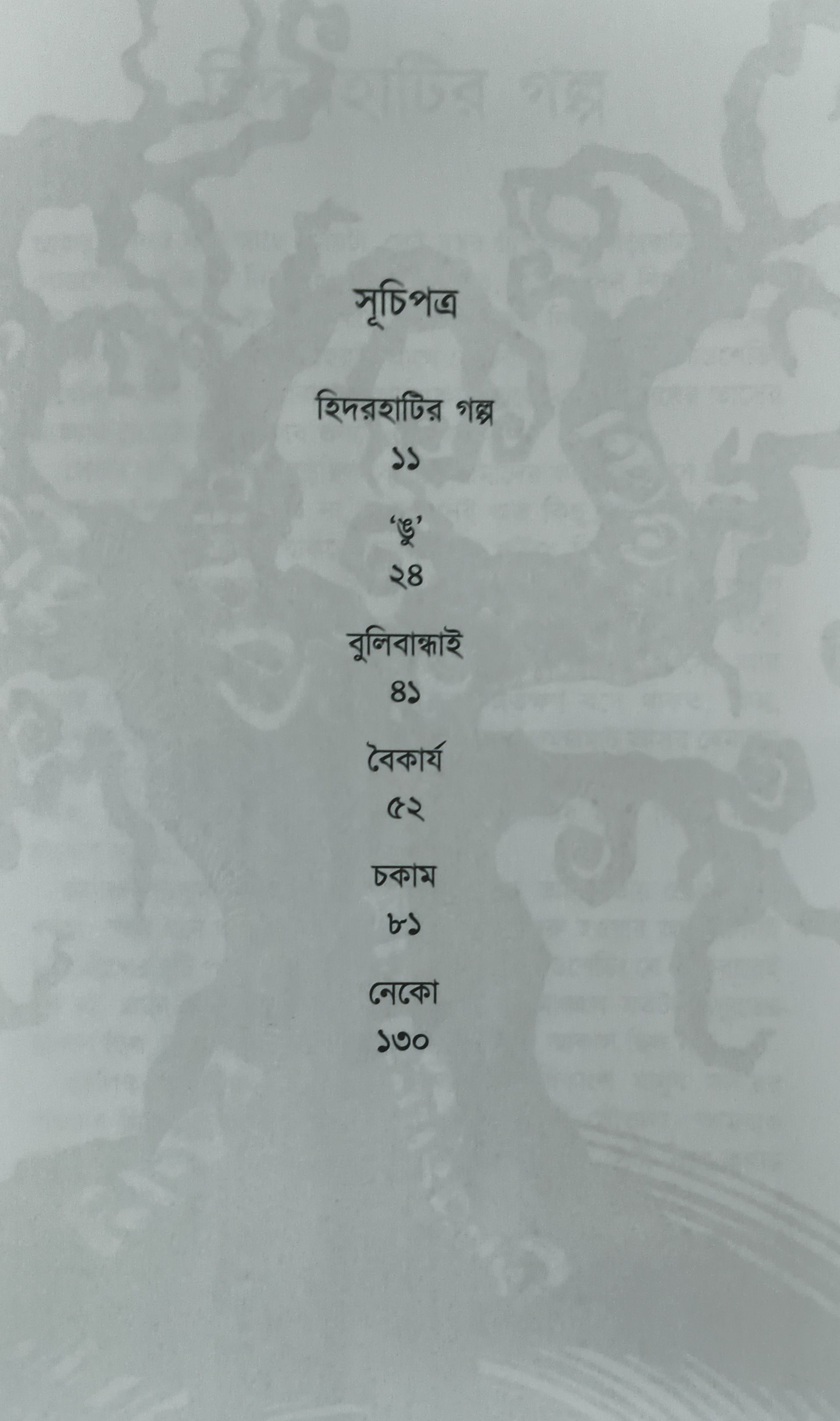 বোধ, চেতনা যখন গুলিয়ে যায় তখনই অস্বস্তি ছাপিয়ে মনে ছড়িয়ে যায় খাঁটি ভয়। বিভ্রান্তির এই আঁধারের তল কোথায়? ঘোলাটে মনের অন্ধকারে অস্বস্তিকর ভয় পাঠককে গ্রাস করে। রিপু, বিকার, আদিম অসহায়তার স্রোতের পরতে পরতে অলৌকিক, অন্য জগতের আবছা ছবির ছয়টি গল্প..... ছয়টি মনস্তাত্ত্বিক ভয়ের গল্প যেগুলি পাঠককে নিজস্ব স্মৃতিশক্তি, বিচক্ষণতাকে প্রশ্ন করবে বারে বারে।