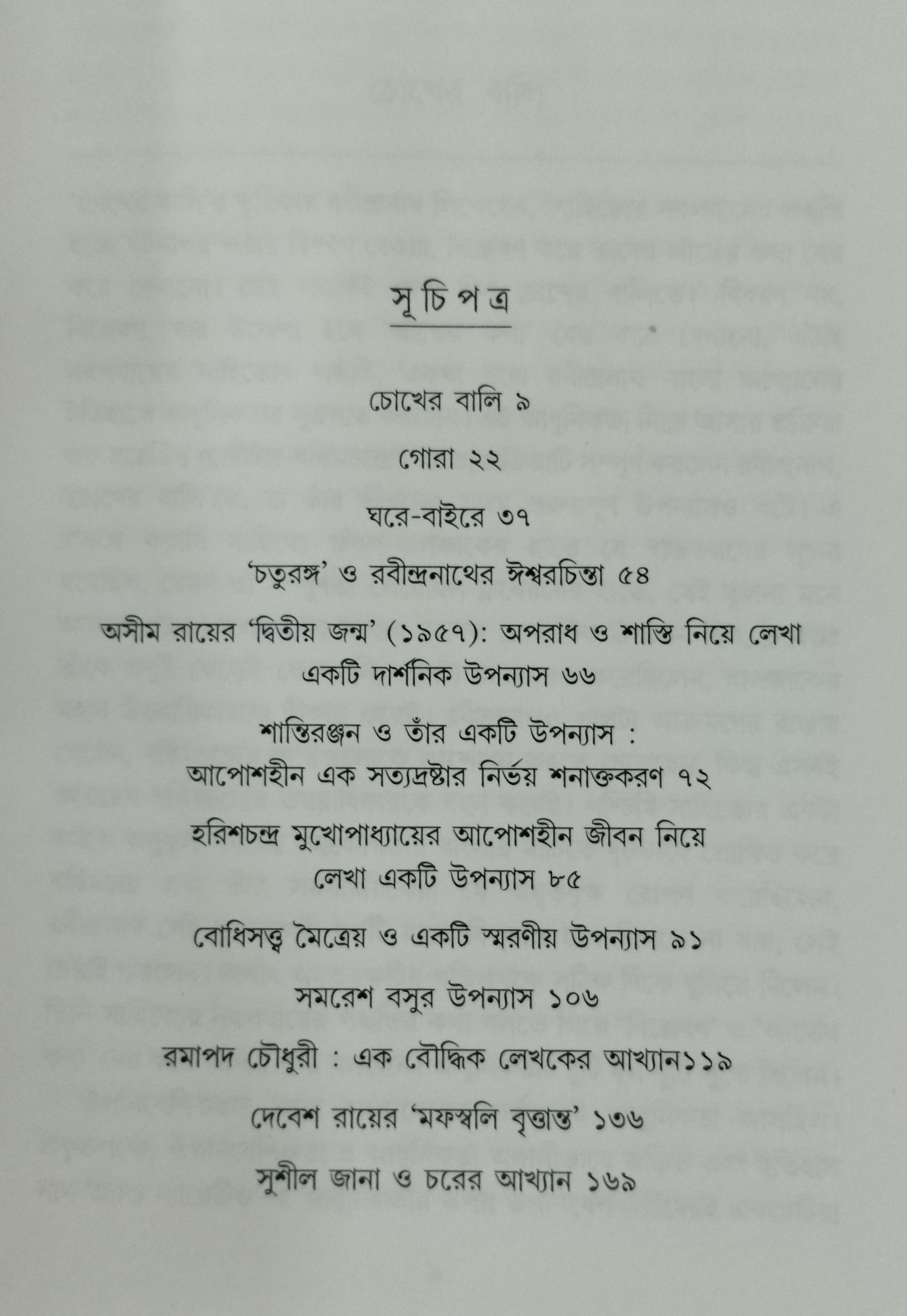 পাশাপাশি আলোচিত হয়েছেন অসীম রায়, শান্তিরঞ্জন বন্দ্যোপাধ্যায়, অগ্নিমিত্র, বোধিসত্ত্ব মৈত্রেয়, সমরেশ বসু, রমাপদ চৌধুরী, দেবেশ রায়, সুশীল জানা প্রমুখ দিকপাল বাঙালি ঔপন্যাসিক। যেকোনো ভাষারই সবচেয়ে গুরুত্বপূর্ণ উপন্যাস এবং প্রতিনিধিত্বমূলক ঔপন্যাসিকদের খুঁজে দেখা এবং আবিষ্কার করা জরুরি হয়ে পড়ে।