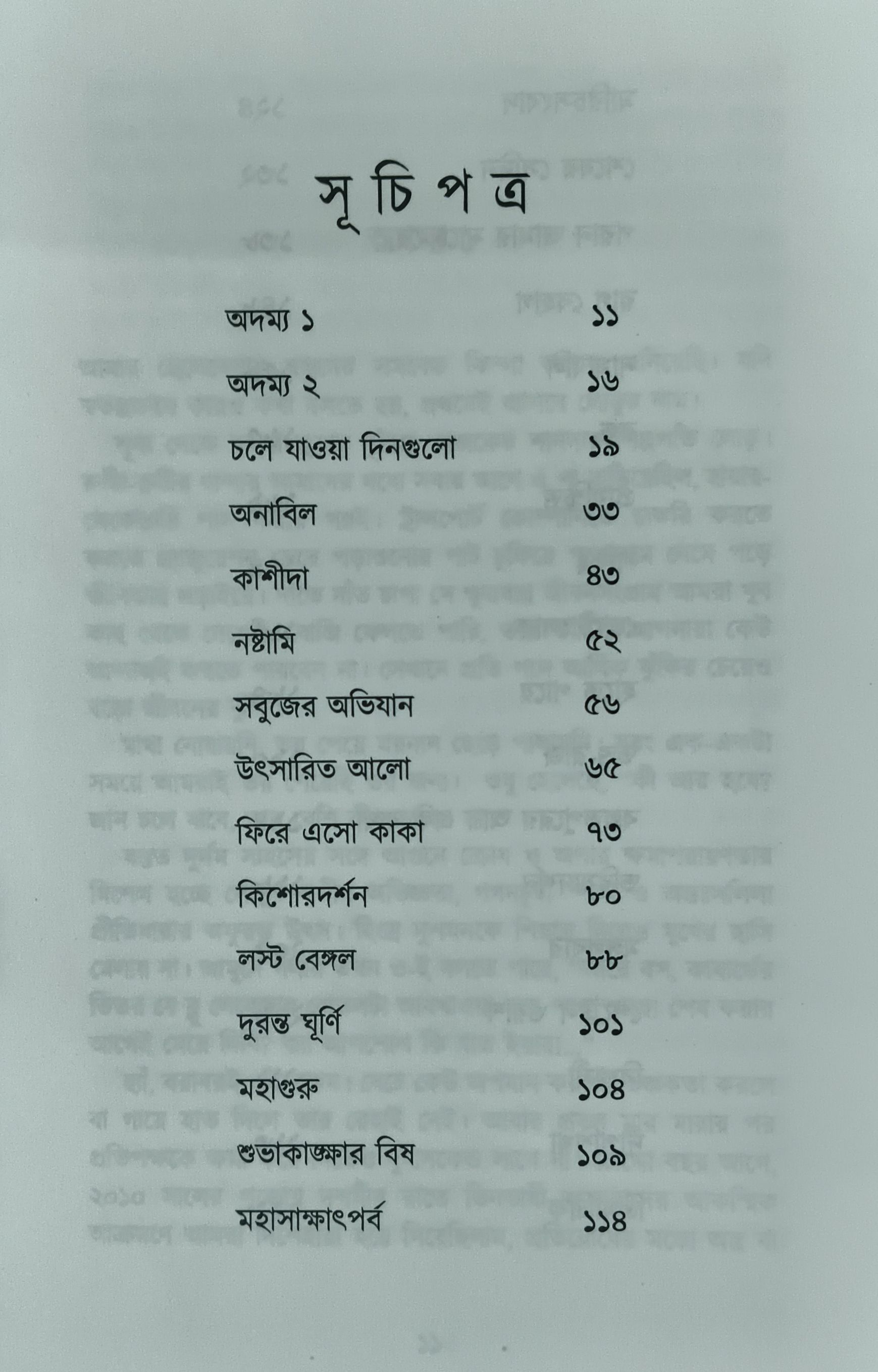 প্রৌঢ় সাংবাদিকের কলমে বাস্তব পটভূমি থেকে তুলে আনা এমন তেত্রিশটি রম্যরচনার পসরা সাজিয়ে দিল এই বই। নিশ্চিত ভাবে বলা যায়, প্রতিটি আখ্যানে অভাবিত নতুনত্বের স্বাদ পাঠককে মোহিত করবে, পড়া শেষ করলেও থেকে যাবে মধুর আবেশ। আপন আপন জীবনের ফেলে আসা ছায়াপথে উঁকি মেরে স্মৃতিমেদুরতায় বিবশ হবেন প্রত্যেকে।