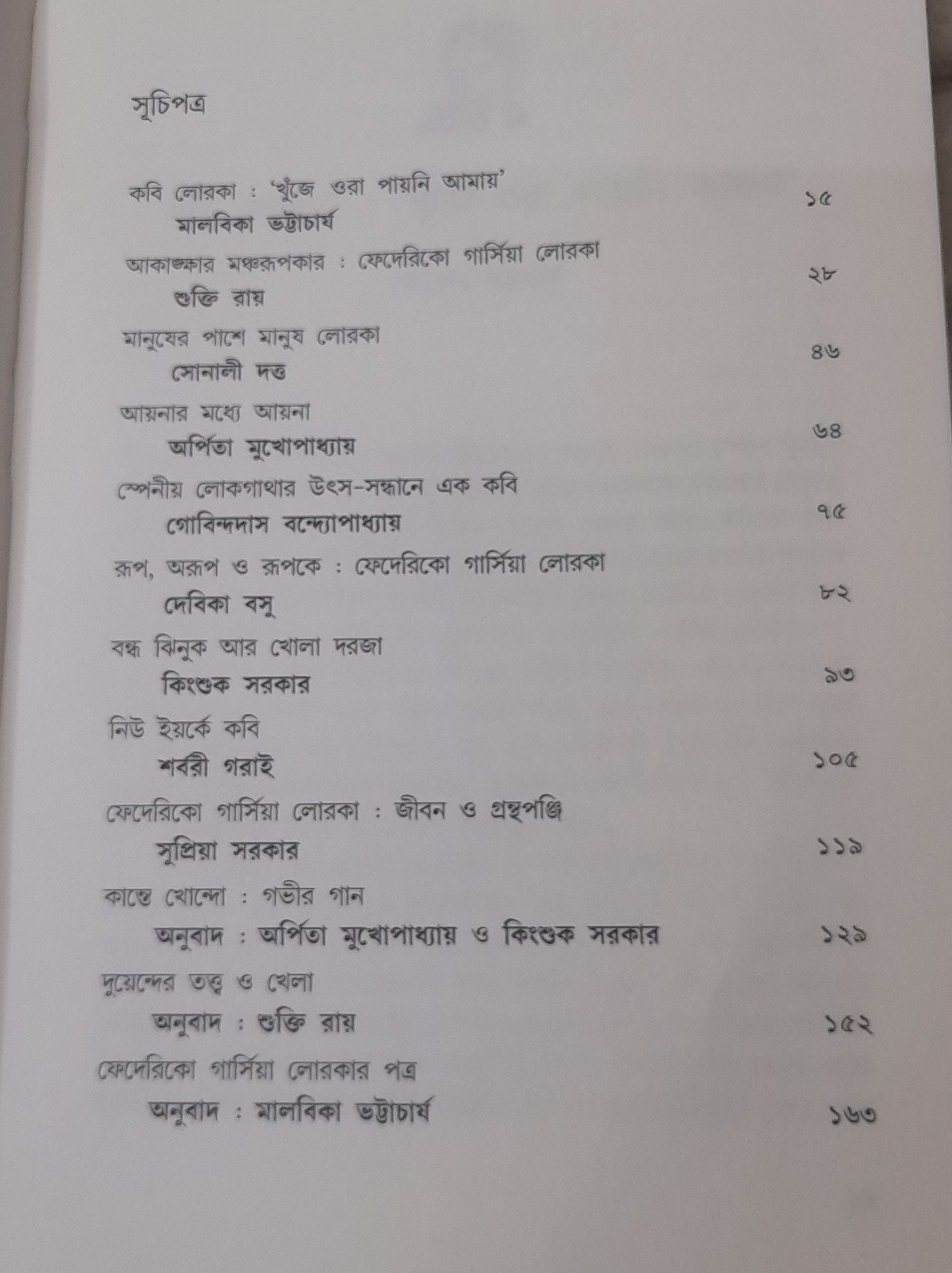 স্পেনের ২৭-এর প্রজন্মের কবি ফেদেরিকো গার্সিয়া লোরকার জন্ম ফুয়েন্তে ভাকেরোস গ্রামে ৫ই জুন ১৯৯৮ সালে। অসুস্থ শৈশবে পেয়েছেন সঙ্গীত পিপাসু মা এবং এলাকার প্রান্তিক মানুষের সহজ সাহচর্য। ১৯১৫ সালে গ্রানাদায় বিশ্ববিদ্যালয়ের ছাত্রাবস্থায় কাফে আলমেদার ছোট্ট কোণে বসে অবগাহন করেছেন পিয়ানোর সুরে, কবিতায়। ১৯১৯ সালে মাদ্রিদে রেসিদেন্সিয়ায় অবস্থান কালে তাঁর মুকুটে যুক্ত হয়েছে নাট্যকারের পালক। একনায়ক রিভেরার উত্থান পর্বে সমকামিতাজনিত সমস্যায় অস্থির কবি ১৯২৯ সালে যান নিউইয়র্কে এবং হুইটম্যানের প্রভাবে তাঁর কবিতার পদবিন্যাস ও বিষয়ে উল্লেখযোগ্য বৈচিত্র আনে। দেশে ফিরে কালজয়ী নাটক লেখেন। নতুন প্রজাতান্ত্রিক সরকারের হয়ে বারাকা নাট্যদল নিয়ে ছুটে বেড়ান গ্রাম থেকে গ্রামান্তরে। একনায়ক ফ্রাঙ্কোর রাজনীতির আবর্তে আসার সময় থেকেই লোরকা ফ্যাসিজমের বিরোধিতা করেন। তাই ১৯৩৬ সালের ১৮ কিংবা ১৯ আগস্ট তাঁকে হত্যা করা হয়। লোরকার মৃতদেহ আজও নিখোঁজ কিন্তু থেকে গেছে তাঁর সৃষ্টি।