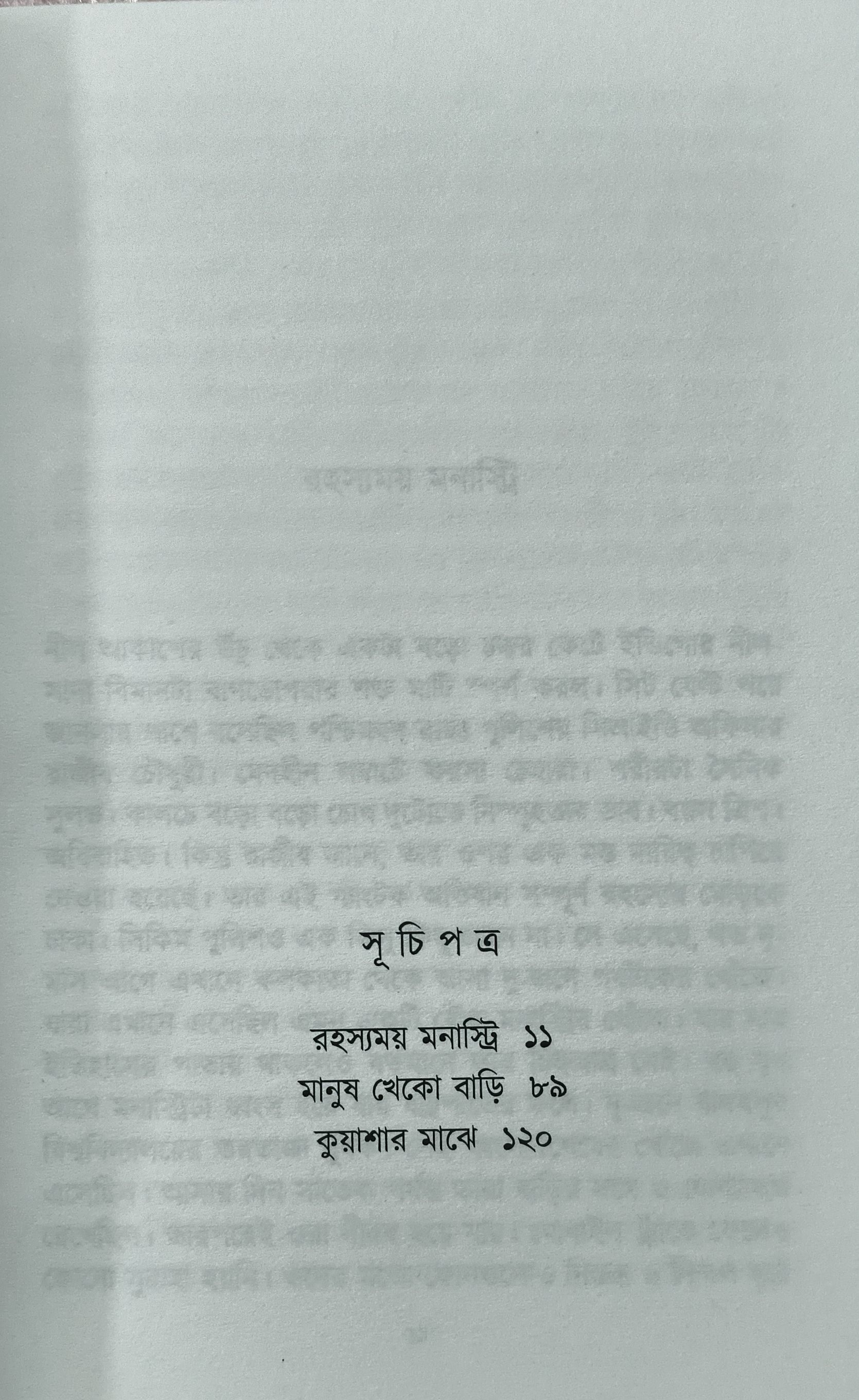 রহস্য ও অলৌকিকের ওপর আমাদের আকর্ষণ চিরন্তন। মানুষ রহস্য উদ্ঘাটনের জন্যে চিরদিন নিজের জীবনকে বাজি পর্যন্ত রেখেছে। যে-কোনো রহস্য মানুষের মনে কৌতূহল সঞ্চার করে। যতক্ষণ না রহস্যের সমাধান হচ্ছে, সে নিশ্চিন্ত হতে পারে না।... অলৌকিক বিষয়েও এই কথাগুলো খাটে। বিশ্বাস-অবিশ্বাসের ওপর ভর করে সে আসল সত্য অনুসন্ধান করে চলে। এই বইতে লিপিবদ্ধ আছে সেইরকমই তিনটি রহস্যময় ও অলৌকিক ঘটনা।...